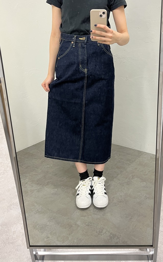 タイトなシルエットで、デニムスカートなのにカジュアルしすぎず、綺麗に着こなせます。