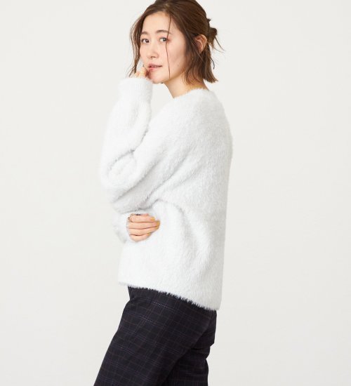 繊細なラメ糸とフェザーヤーンを贅沢にミックスした、女性らしい冬ニット。