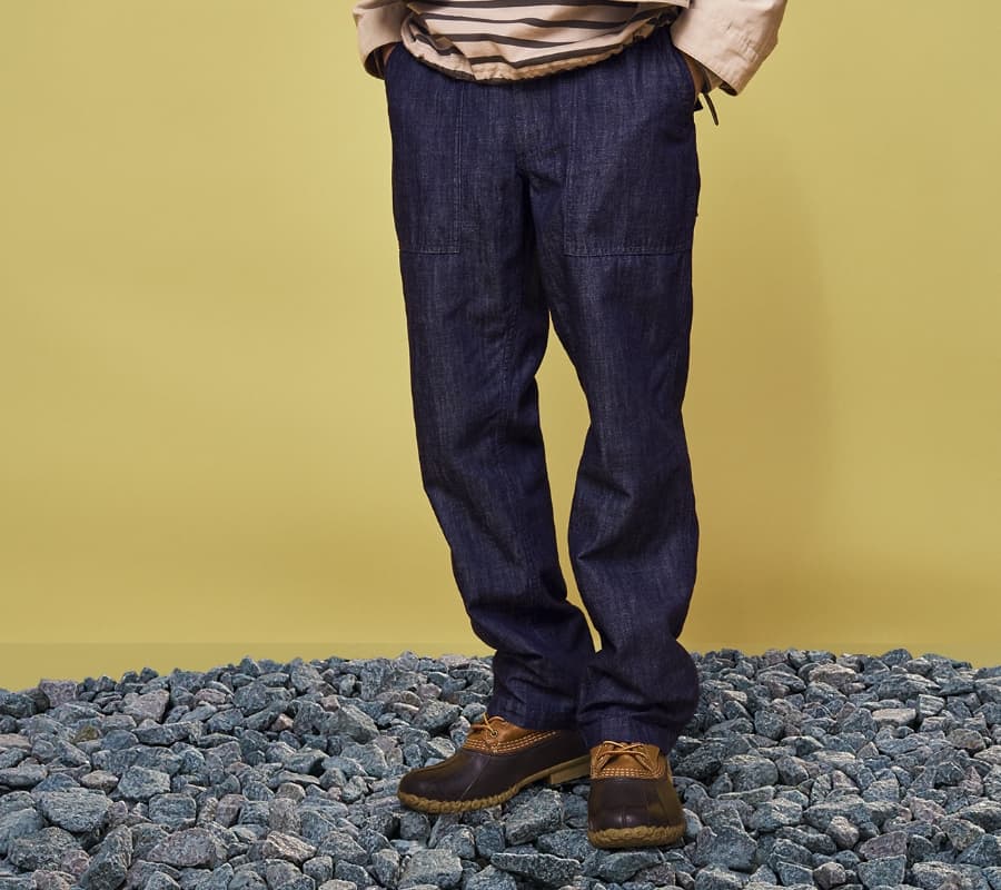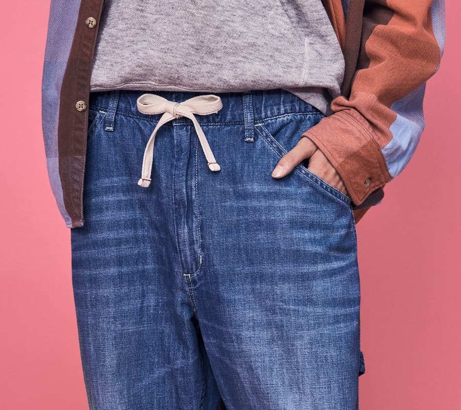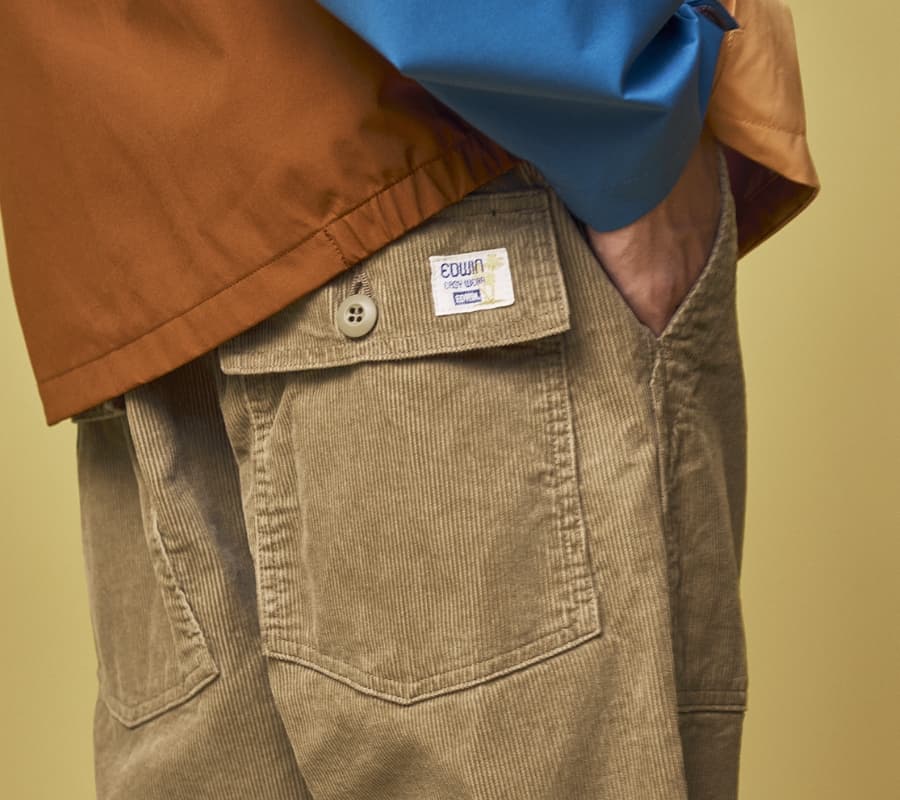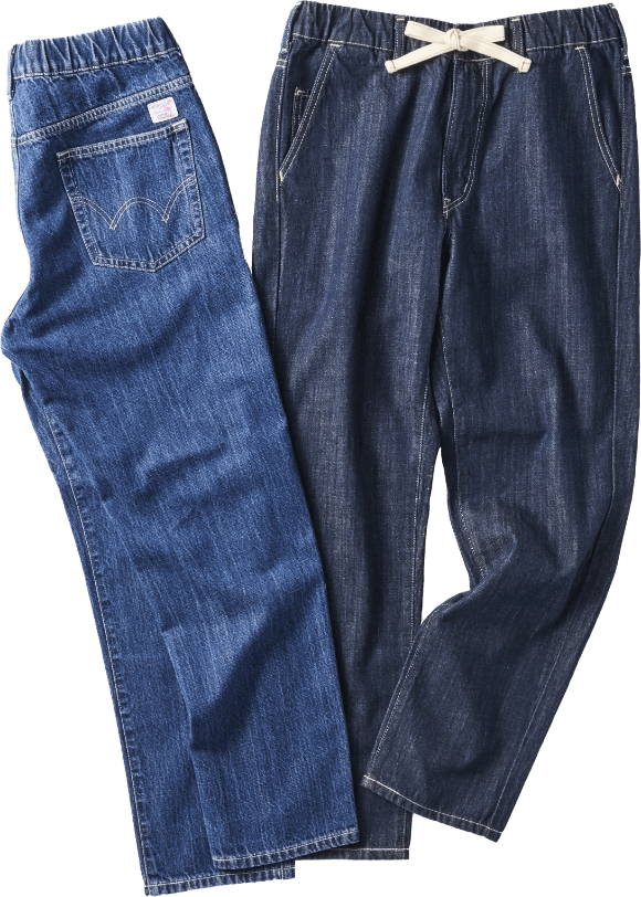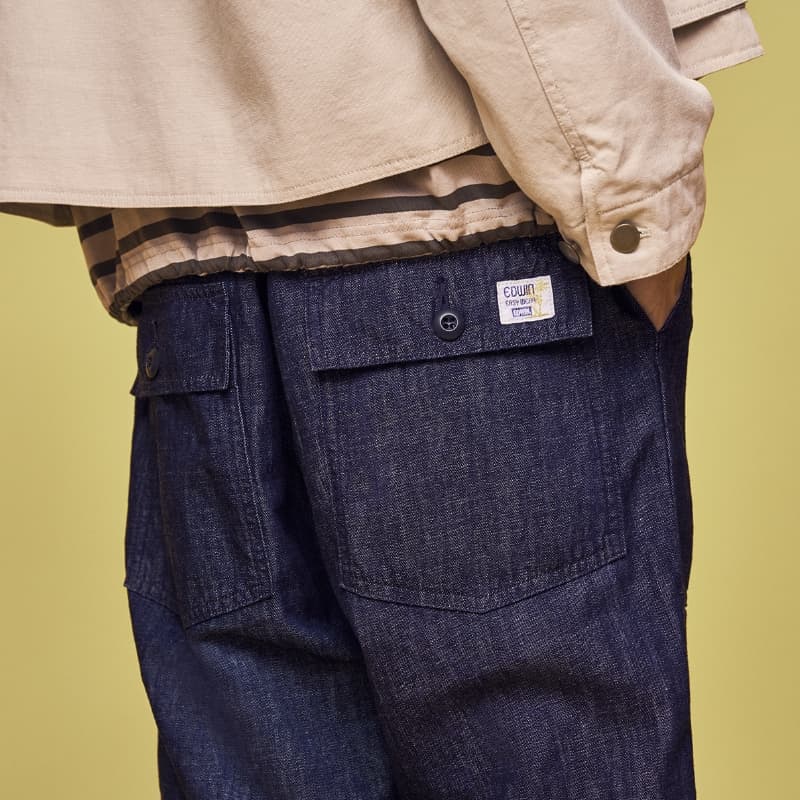 吸湿性や速乾性などの機能に優れたバナナ繊維を使用した、EDWIN EASY WEARシリーズの基本モデル。王道のインディゴカラーと、ゆったりしたシルエットが心地よい。